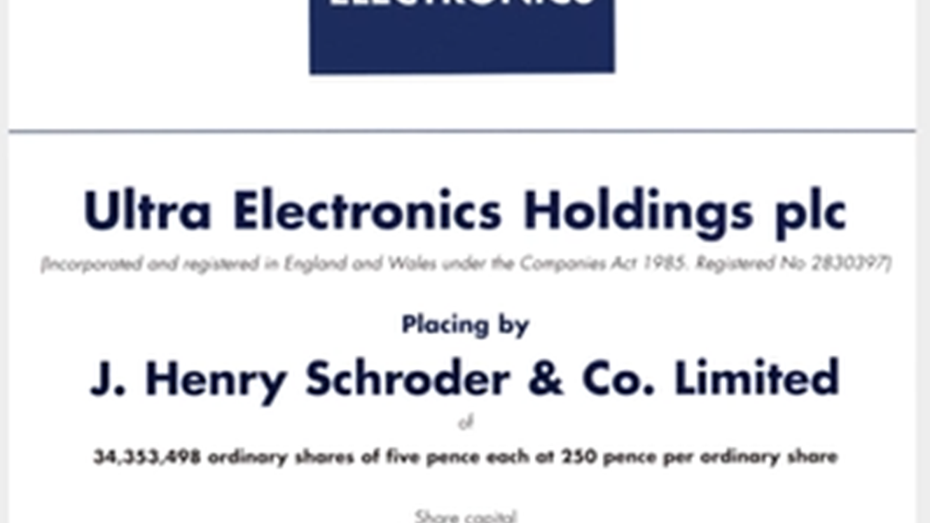 The Company floats on the London Stock Exchange on 3 October 1996. The placing at 250p per share was subscribed 2.5 times for the 34.3m ordinary shares on offer. At close of the first day’s trading, the shares had risen to 286.5p, a premium of 36.5p over the placing price and a market capitalisation of Ultra at over £180m -